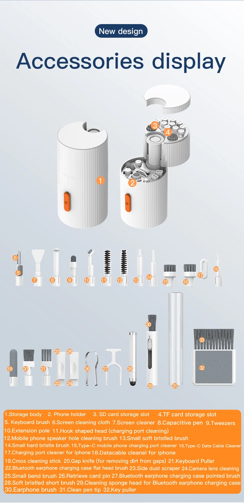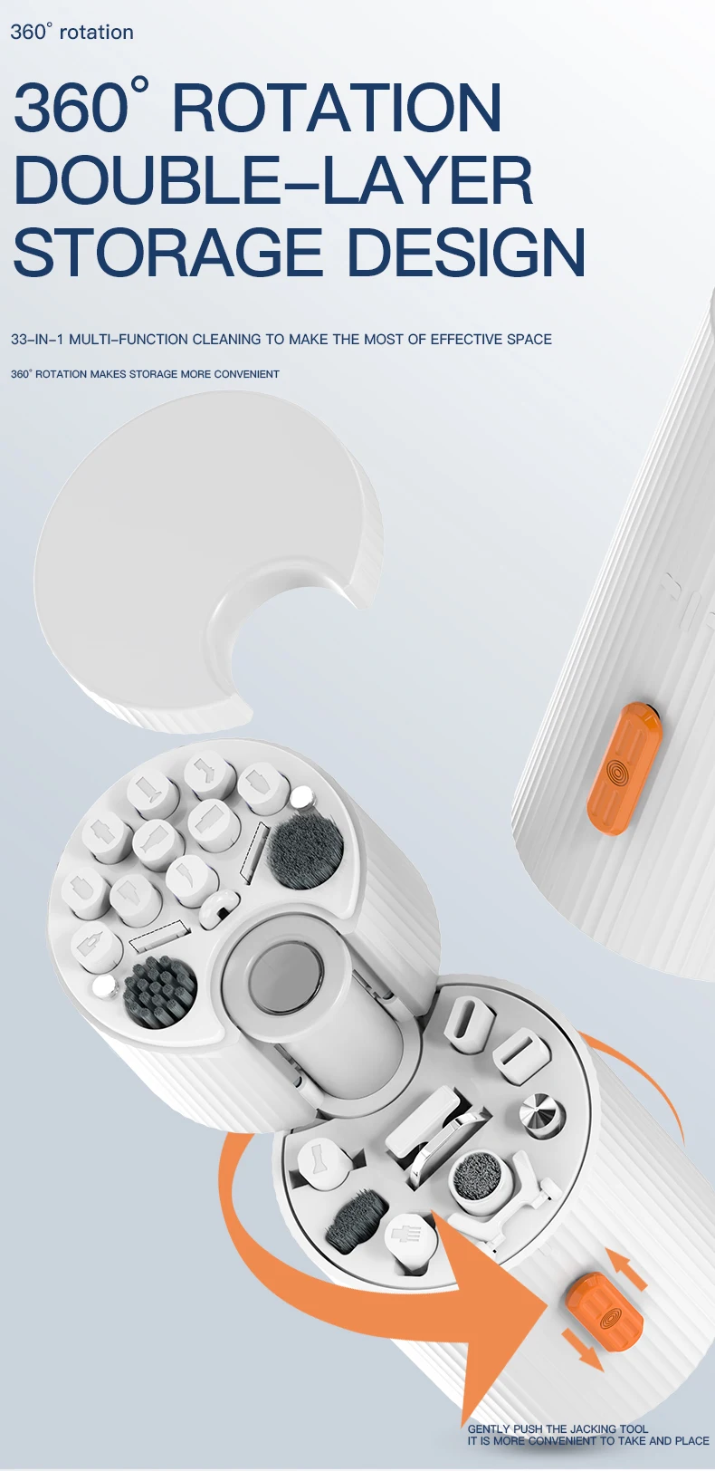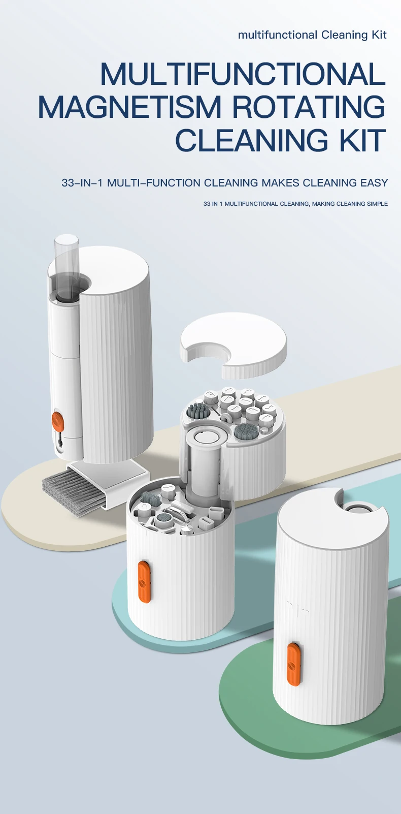 QM33 Magnetic Rotating 33 in 1 Cleaning Kit, Multifunctional Tool Set for Phone Camera Lens Keyboard PC Laptop Screen Drone